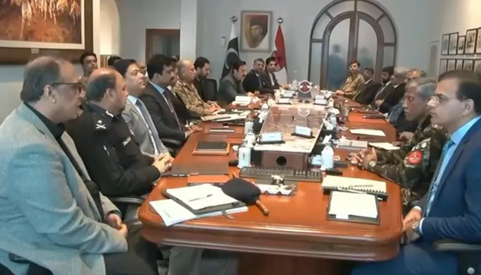 اجلاس میں وفاقی وزیر داخلہ محسن نقوی، وزیراعلیٰ خیبر پختونخوا محمد سہیل آفریدی اور کور کمانڈر پشاور سمیت دیگر ذمہ داران نے سیکیورٹی چیلنجز کا تفصیلی جائزہ لیا۔